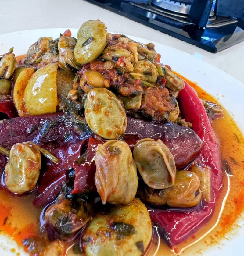 ​תבשיל פול ירוק פיקנטי עם לימון כבוש וכוסברה